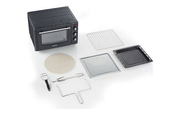 Horno Tostador de 20 Litros y 1500 W. aprox. . Medidas 44 x 39 x 29,5 cm. . Temporizador de 60-minutos con señal acústica al final del ciclo de cocción. . Botón de encendido de 5 posiciones. . Termostato ajustable 100 - 230 .C. . Bandeja recoge migas desmontable. . 4 posiciones para la bandeja de horneado.. Luz piloto. . Incluye piedra para pizza.