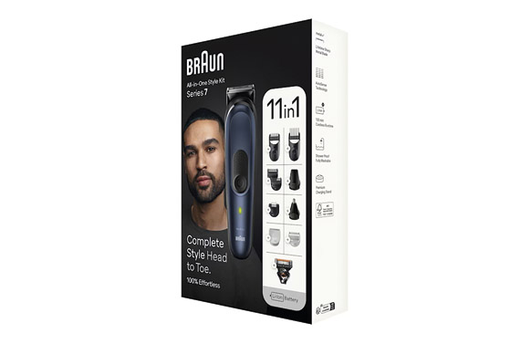 CORTAPELOS Braun Series 7 MGK7450.. - Recortadora 11 en 1 Series 7 de Braun para afeitado de pies a cabeza: accesorios especializados para barba, nariz y orejas, recorte de pelo y rasurado masculino para todo el cuerpo.. - Tu estilo sin esfuerzo: la lámina metálica ultraafilada de nuestras afeitadoras multifunción es eficiente para un afeitado rápido por todo el cuerpo.. - Da forma fácilmente, sin importar la longitud: la tecnología AutoSense de la recortadora todo en uno de Braun se adapta a la densidad de tu pelo para obtener resultados increíbles en cualquier tipo, longitud y grosor de pelo.. - Diseñada para durar: esta recortadora todo en uno para hombre incluye una potente batería de iones de litio que ofrece 100 minutos de autonomía inalámbrica, y es 100 . resistente al agua.. - Perfecto para cada paso de tu rutina en casa: este kit de afeitado para hombre incluye una funda y una base de carga. De esta manera, puedes almacenar tu recortadora de barba y cuerpo en el baño.. - Resistente al agua.. - Adapt